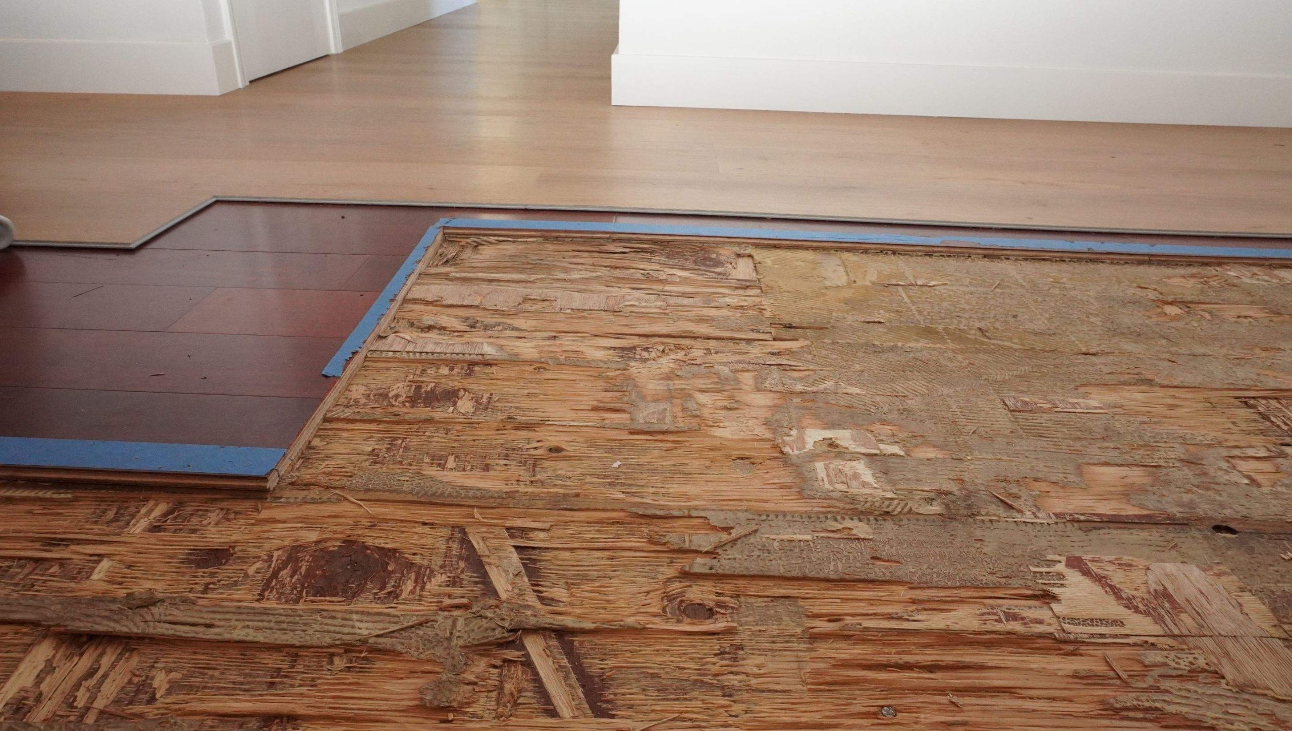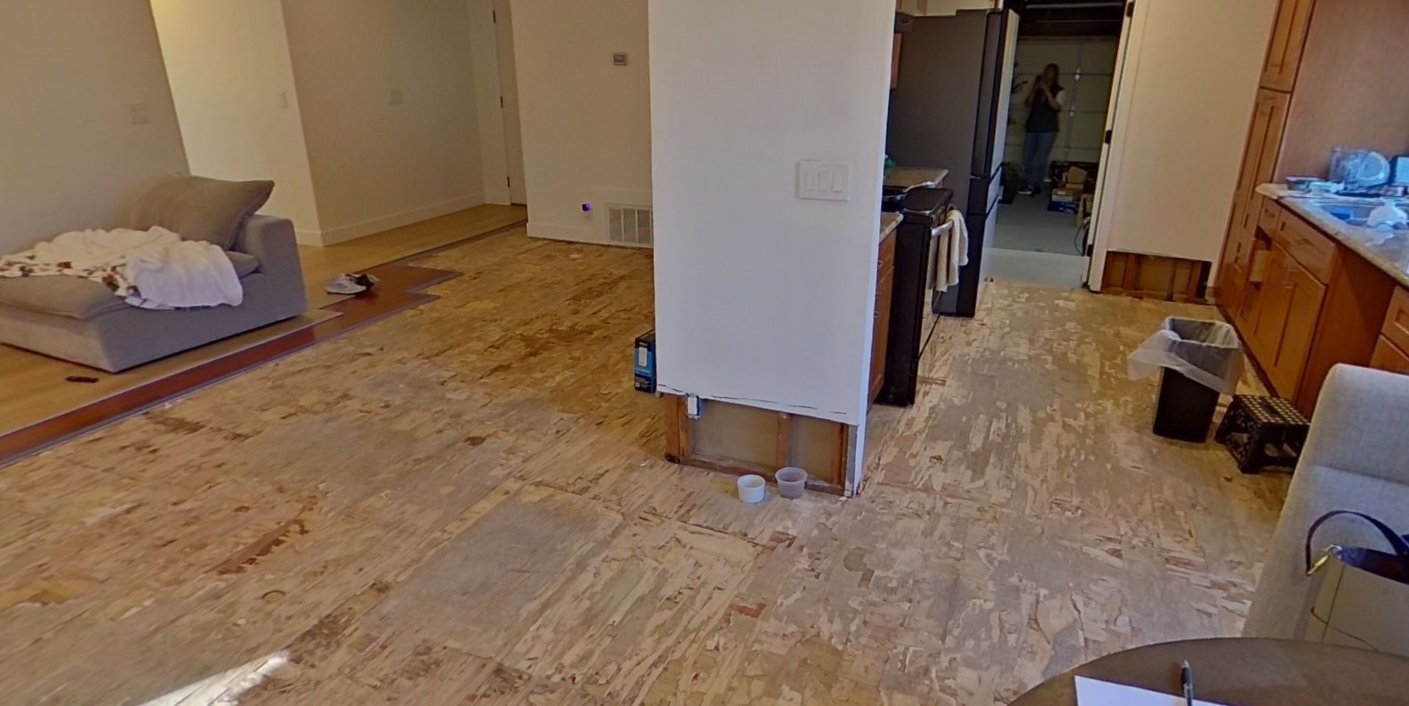 Our Homeowners had just purchased a new home and left for the weekend. When they returned, the kitchen, living room, and garage had filled with water — the refrigerator supply line had ruptured and the house looked like a pool.